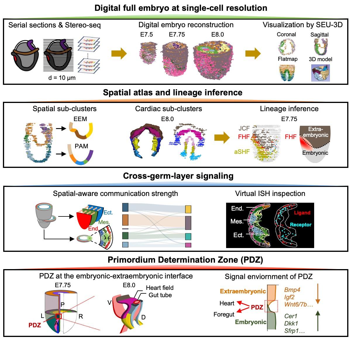 这项突破的背后,是一支跨学科团队近六年的持续攻坚。“我们建构了6个单细胞数字胚胎,每个胚胎细分为60个切片,累计解析数十万个细胞的基因表达信息。这项工作的难度远超想象,初期可用的生物信息学工具十分有限,为了追求更高精度,我们只能边做边开发。”论文第一作者、生物科学与医学工程学院教授谢芃介绍。